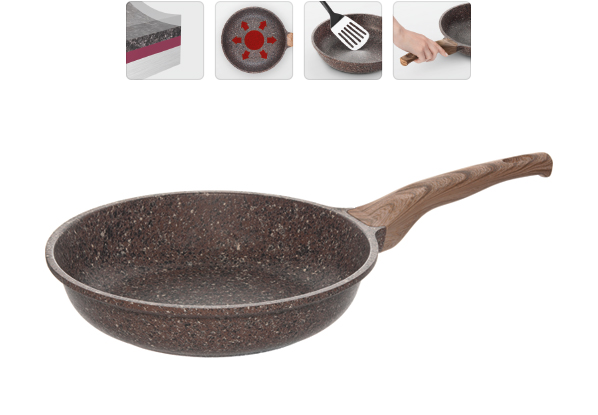 Надежное 5-слойное антипригарное покрытие Pfluon на основе структуры гранита внутри и снаружи сковороды.