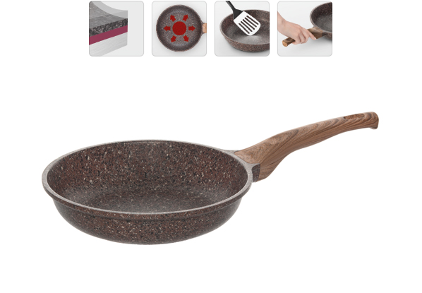Надежное 5-слойное антипригарное покрытие Pfluon на основе структуры гранита внутри и снаружи сковороды.